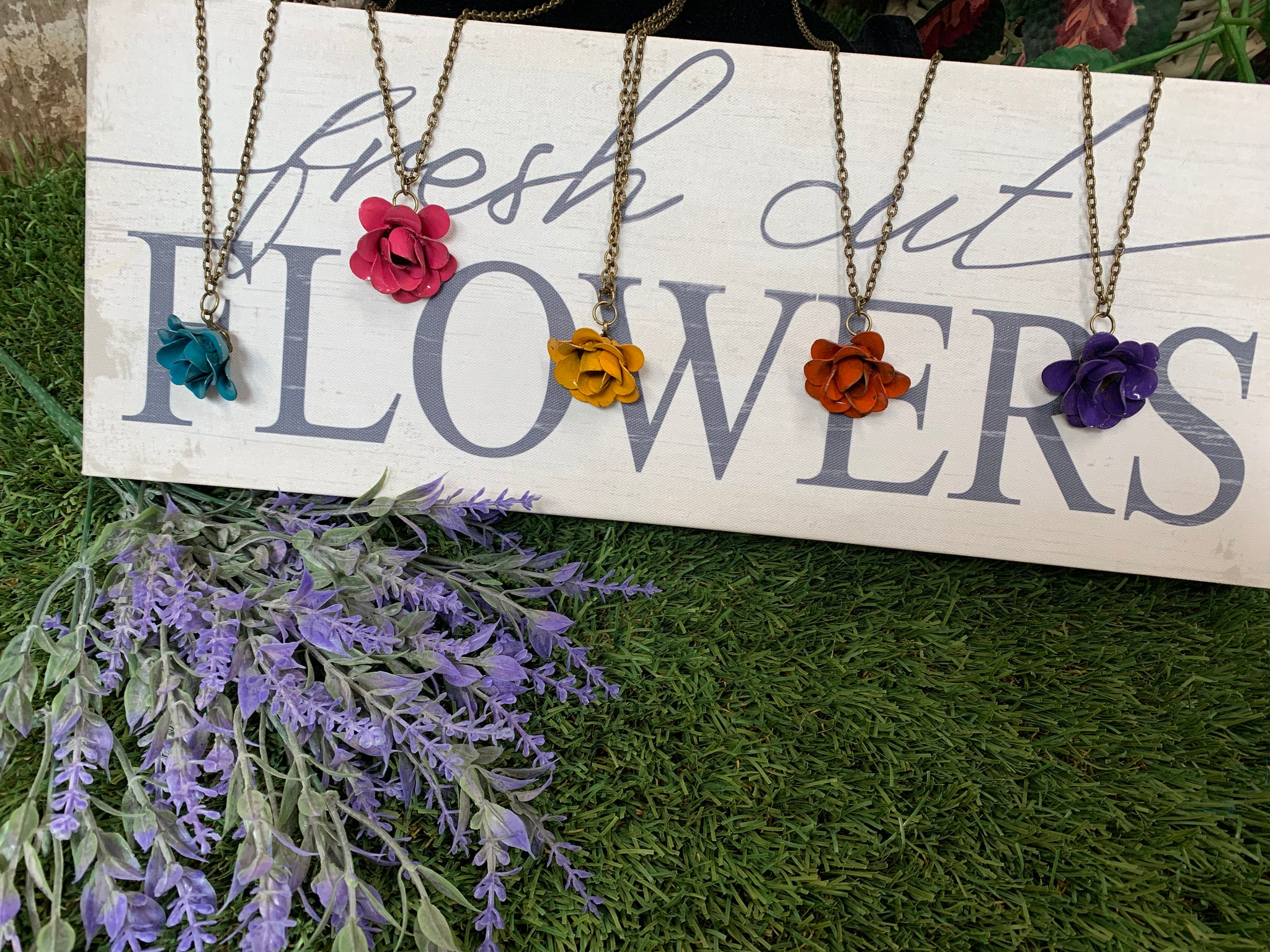Beautifully cut metal small flower that dangles from a glass bead strand that is Adjustable, nickel Free and hypoallergenic.