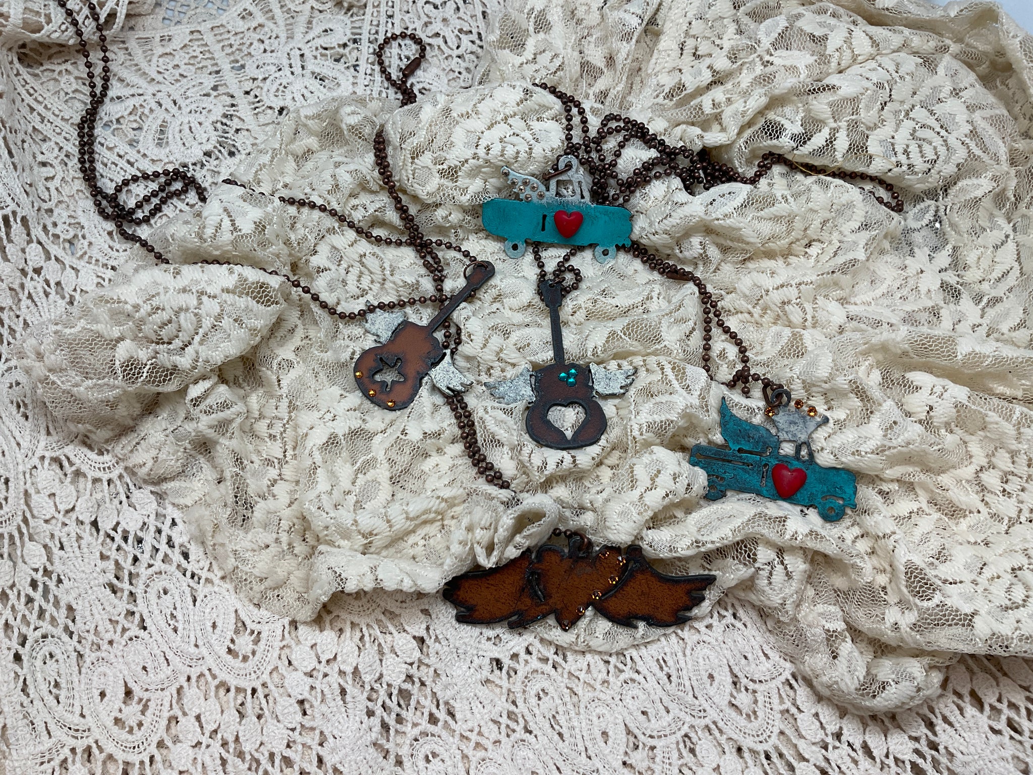 Beautiful Handmade Necklaces Made out of Recycled Metal & Embellished in Swarovski Crystals & other beautifully colored Studs