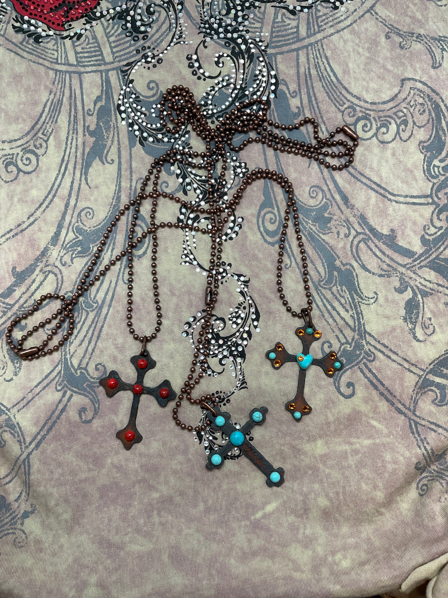 Brown Bottoni Cross/4Turqu Studs/1Turqu Heart