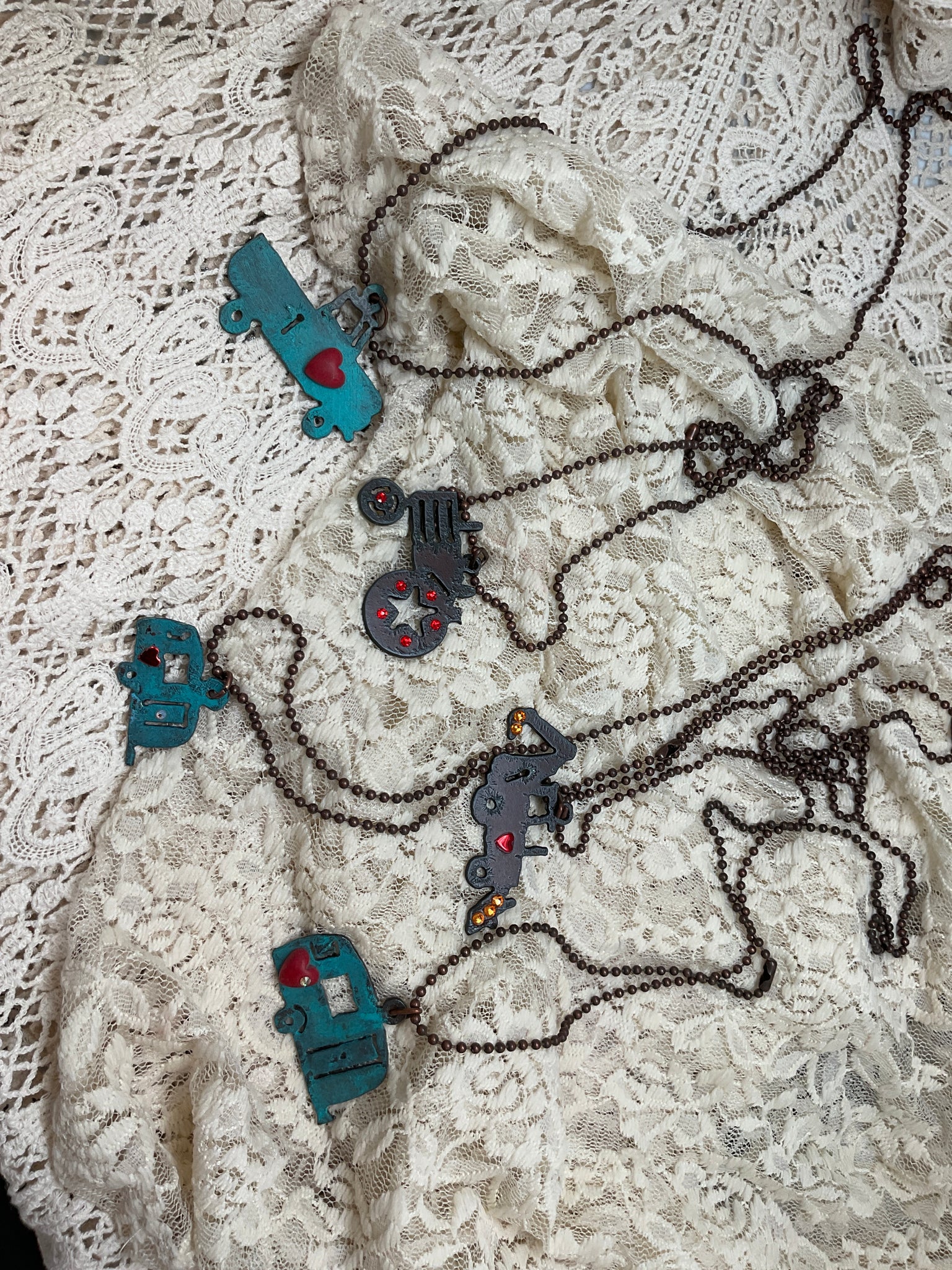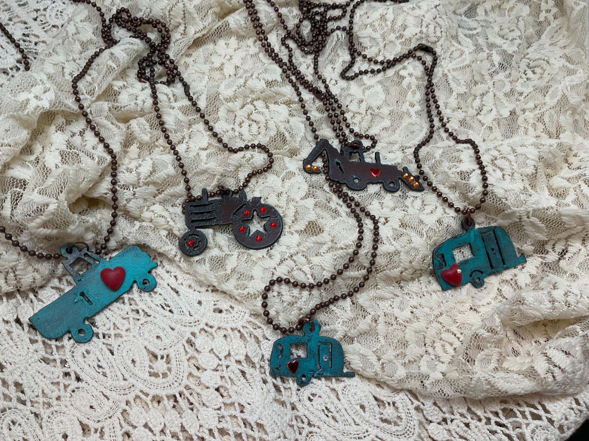 Beautiful Handmade Necklaces Made out of Recycled Metal & Embellished in Swarovski Crystals & other beautifully colored Studs