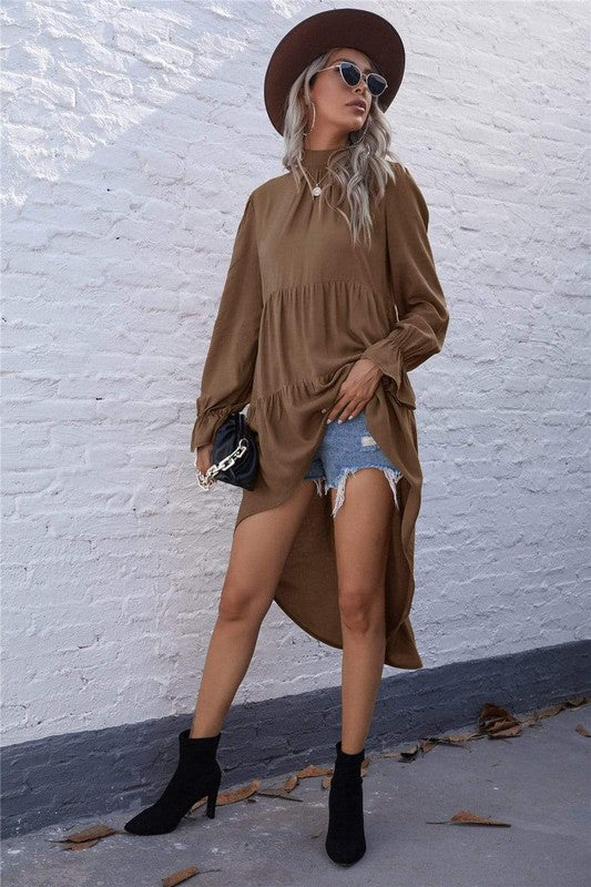 High-Low Ruffle Tiered Long Sleeve Dress or Top