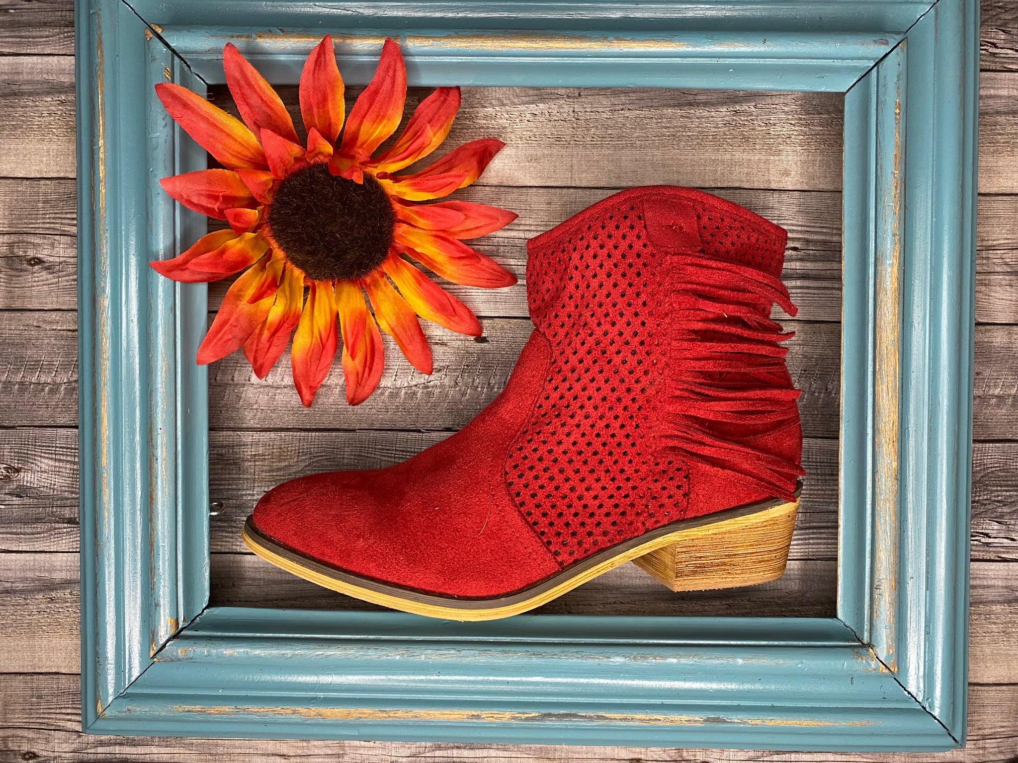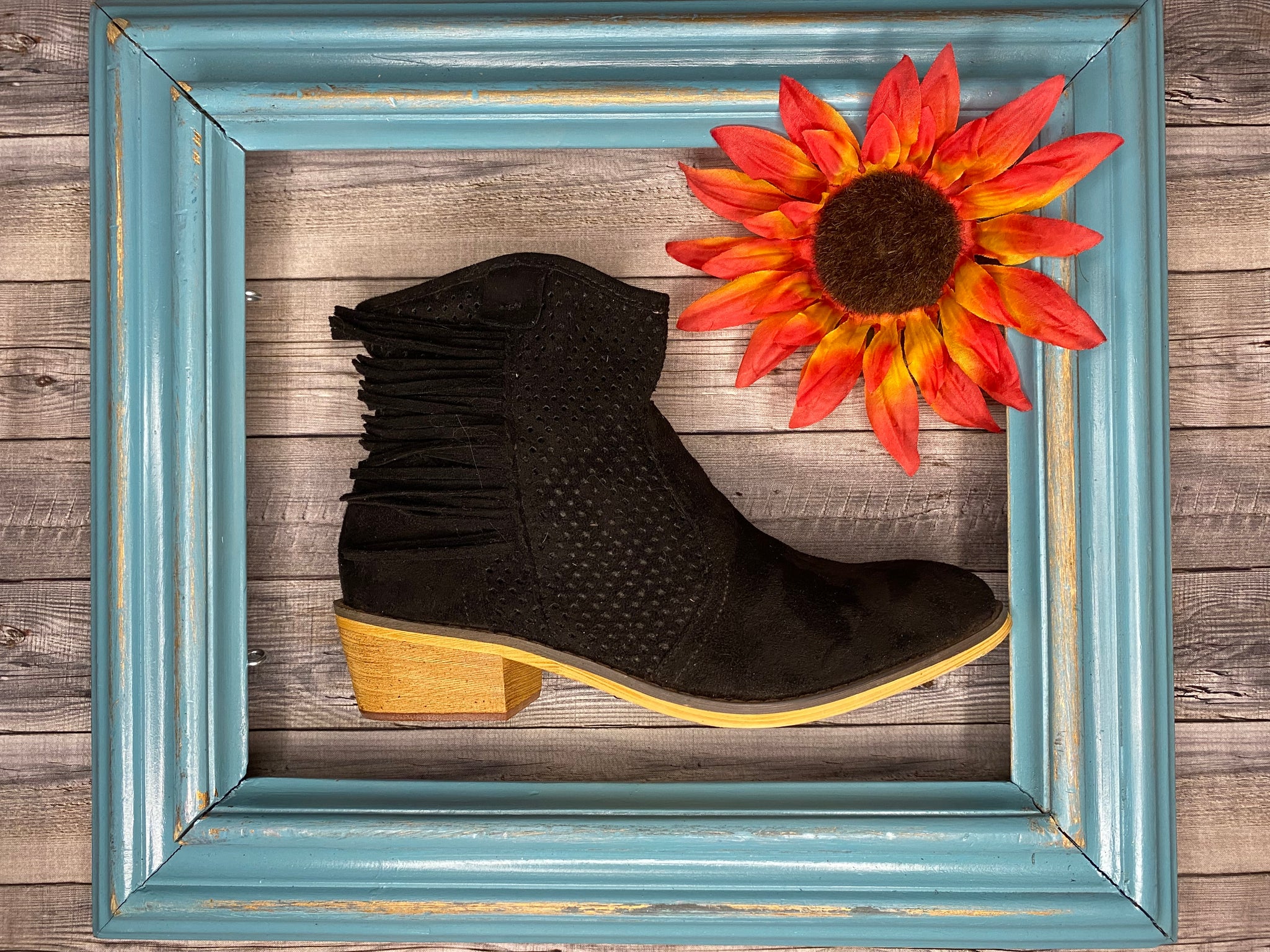 Leather half bootie within 1 inch heel. Fun with a little detail
