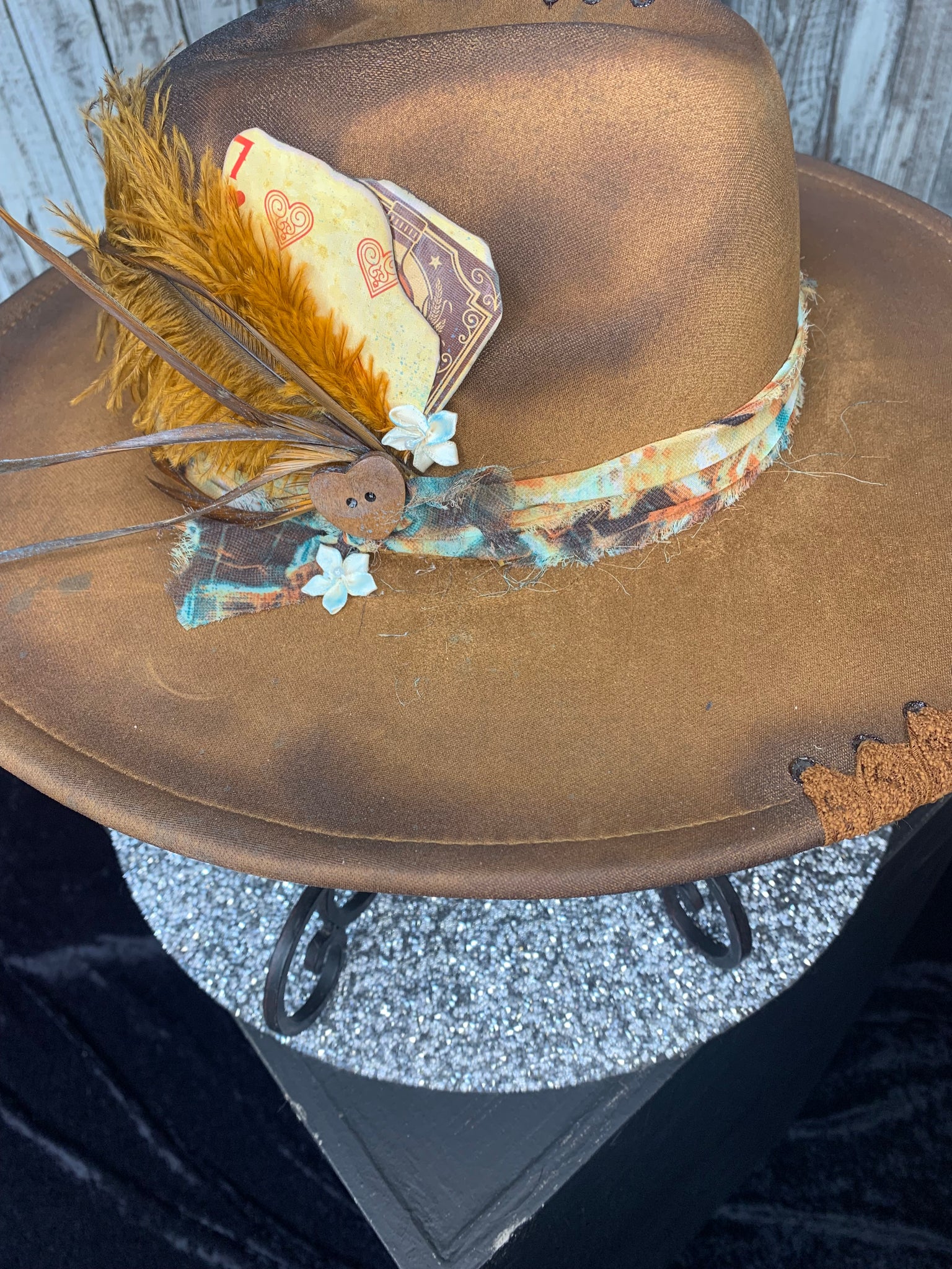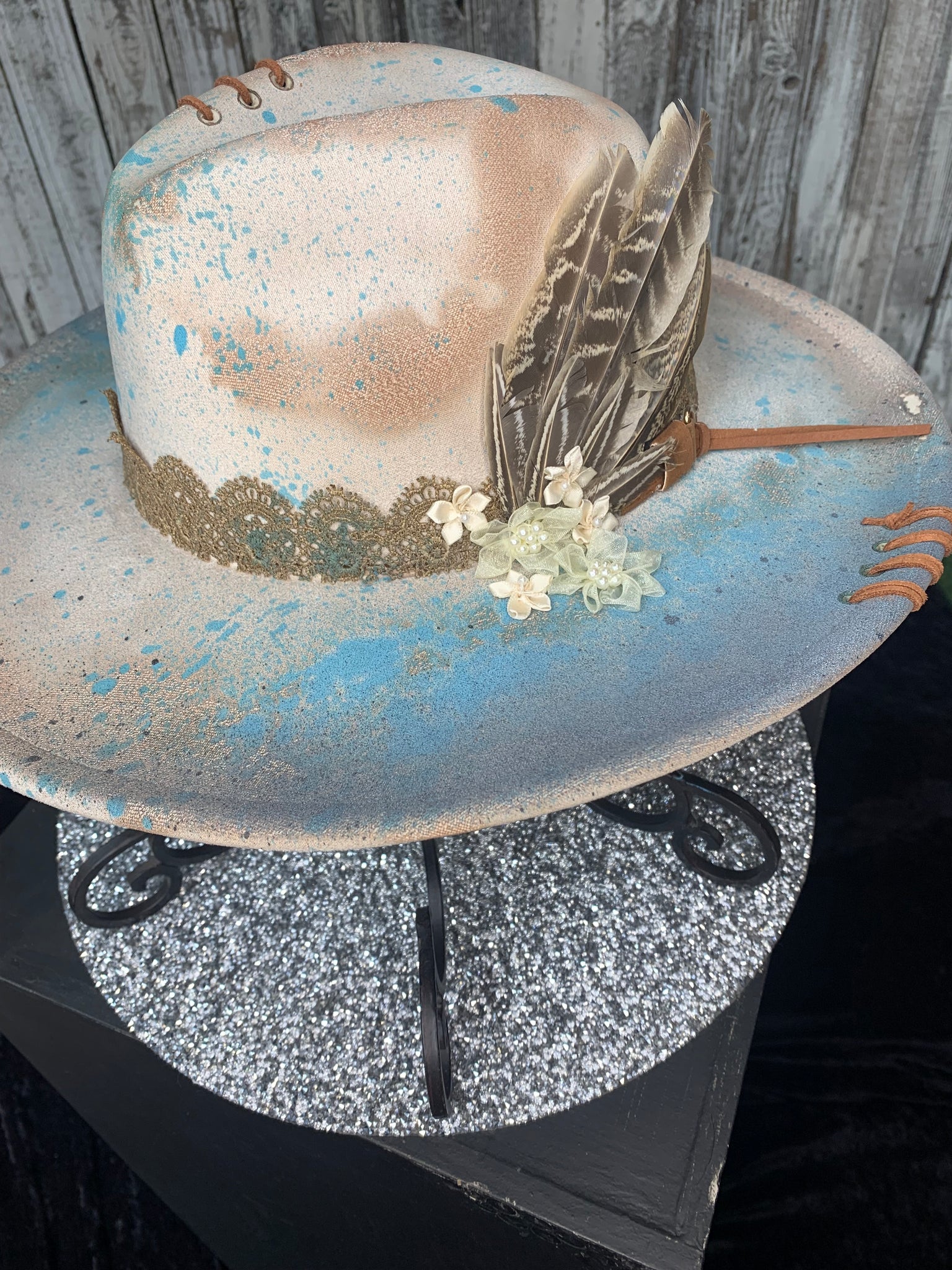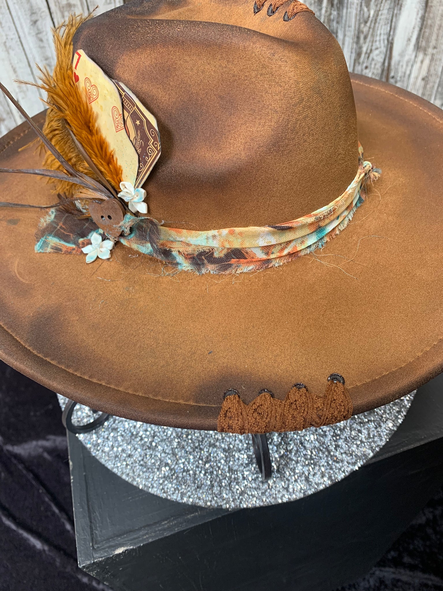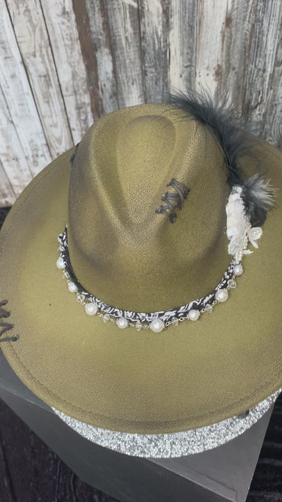 Trailer Trash Love presents Touch of Time Hats - beautiful, one-of-a-kind, repurposed boho hats with added historical details and embellished feathers. Bring a touch of vintage charm to any outfit with these unique hats.