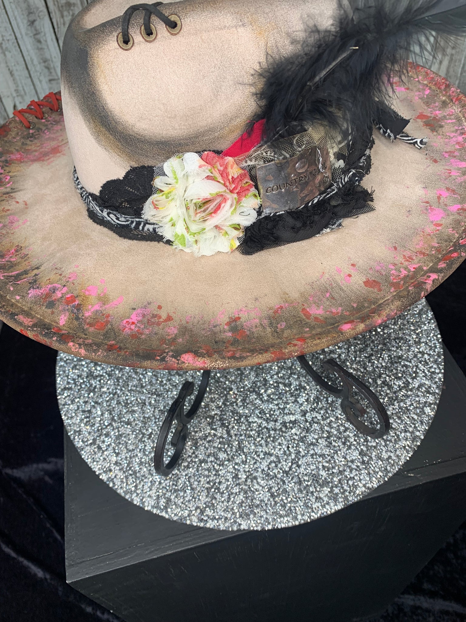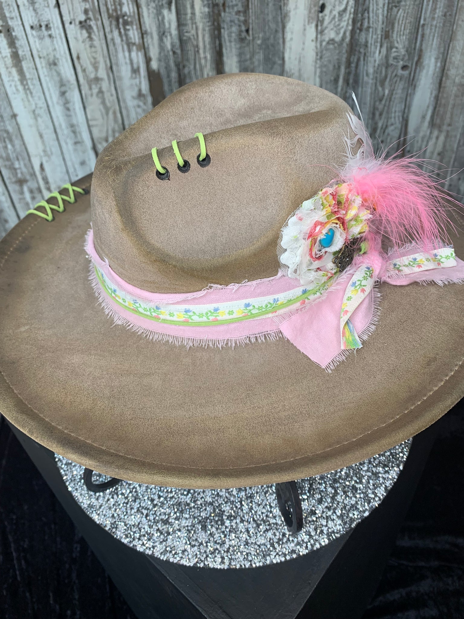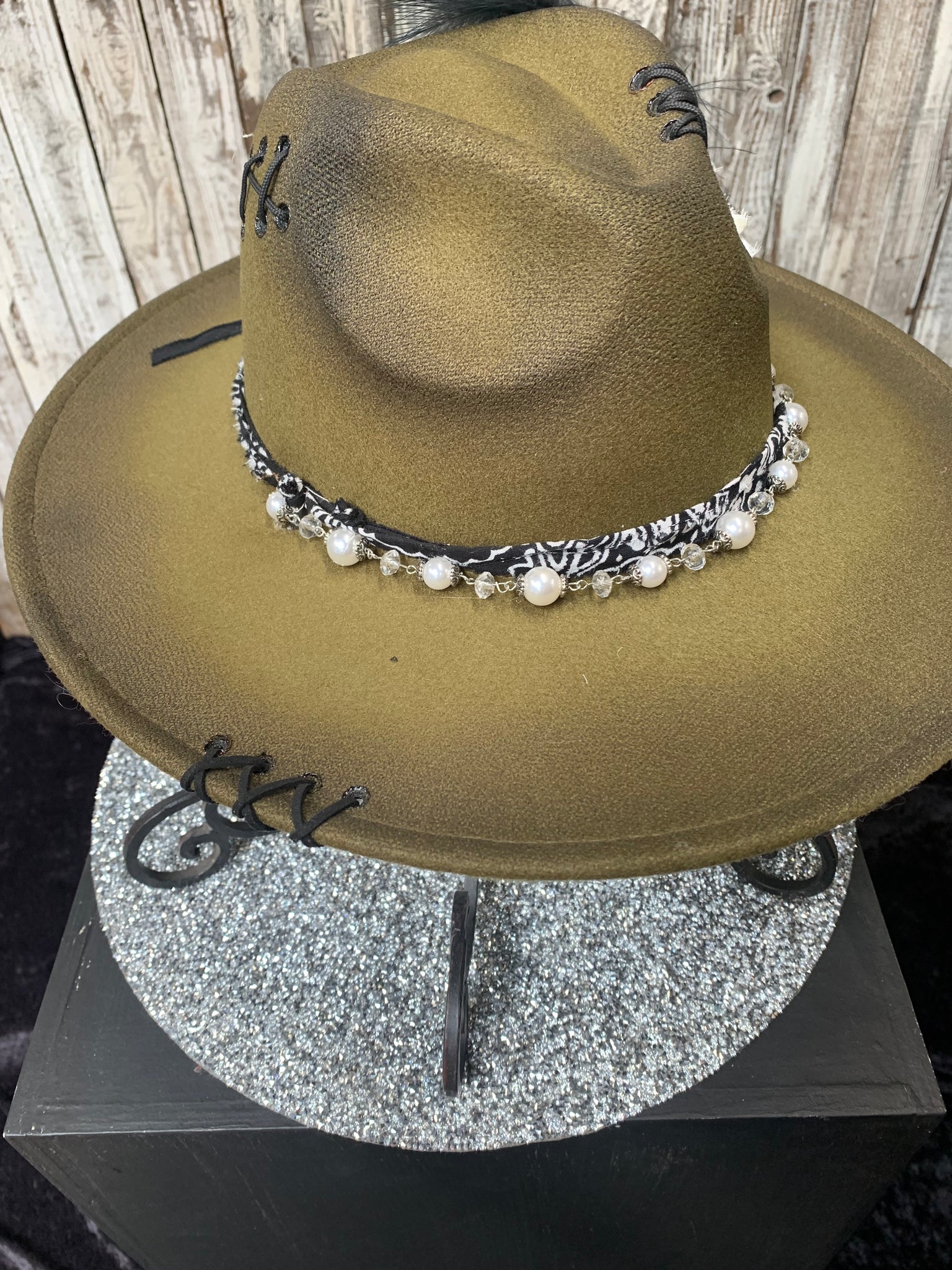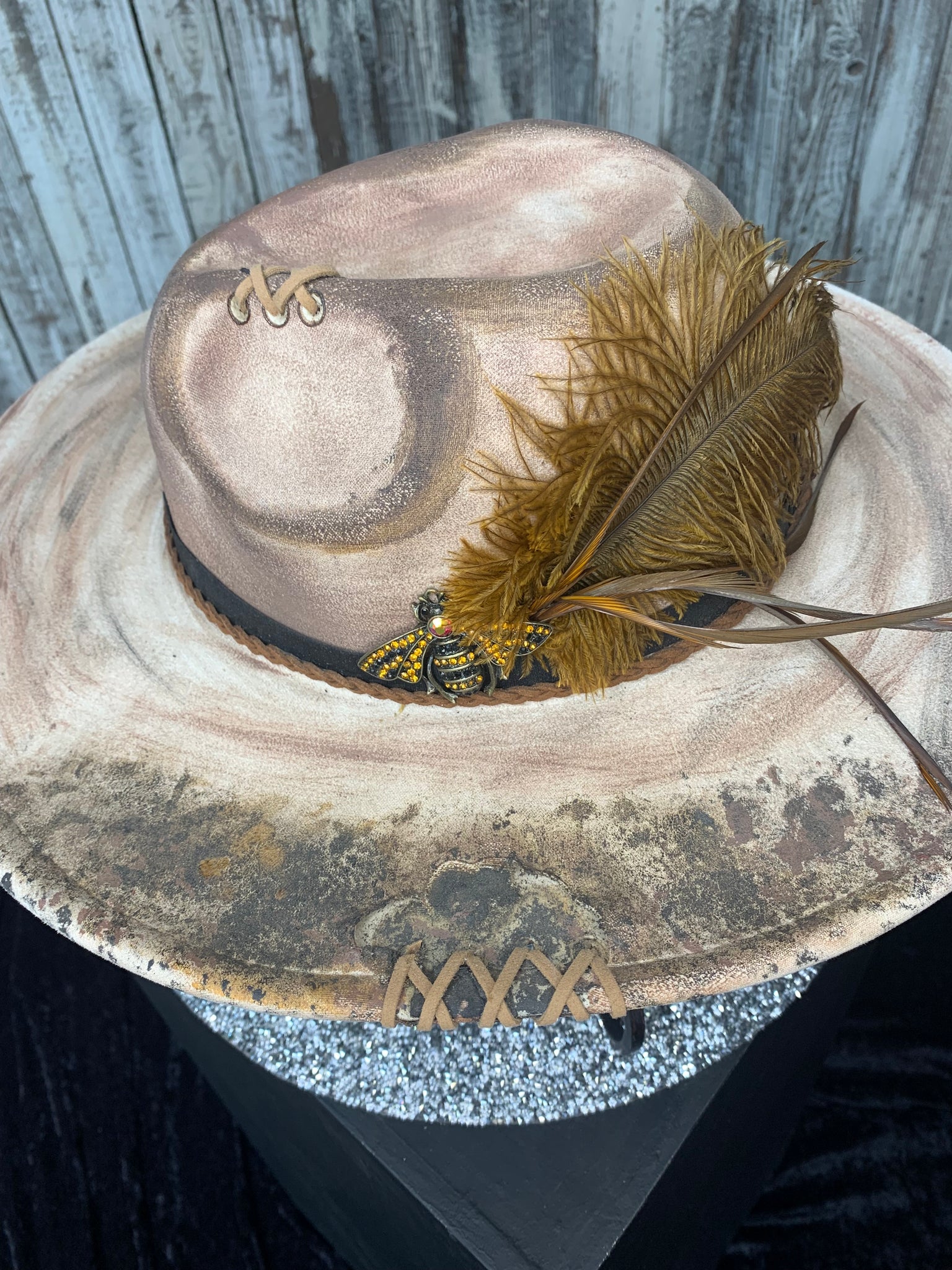 Trailer Trash Love presents Touch of Time Hats - beautiful, one-of-a-kind, repurposed boho hats with added historical details and embellished feathers. Bring a touch of vintage charm to any outfit with these unique hats.