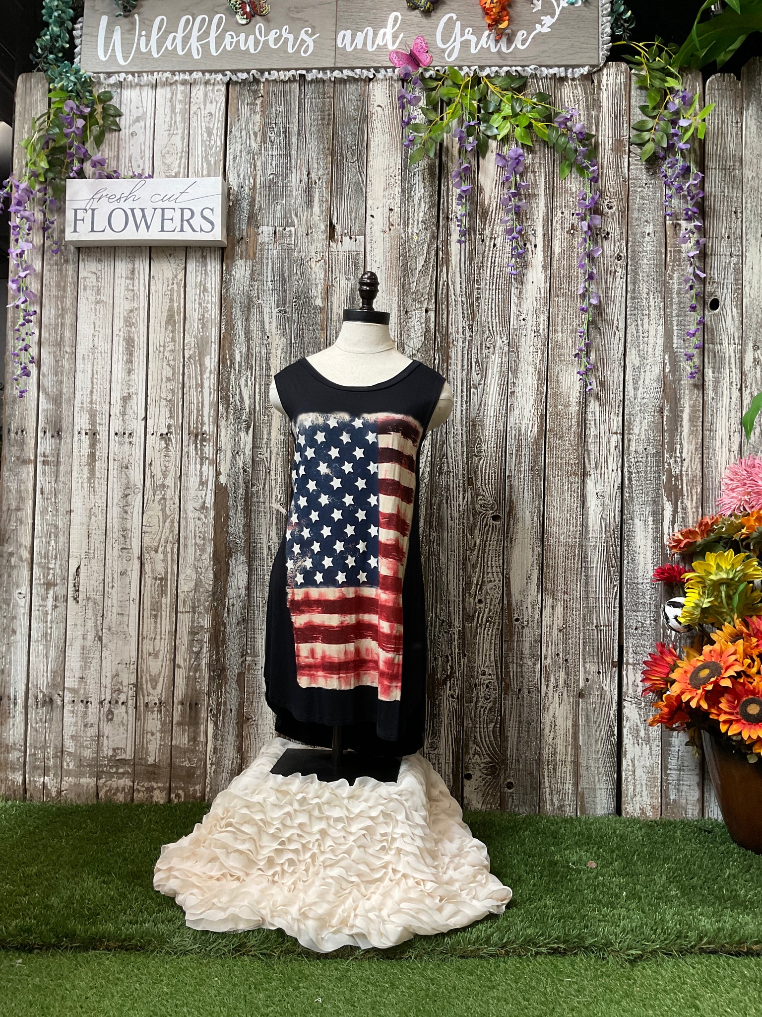 Black Rayon/Spandex Tank Top w American Flag Design covering Front r