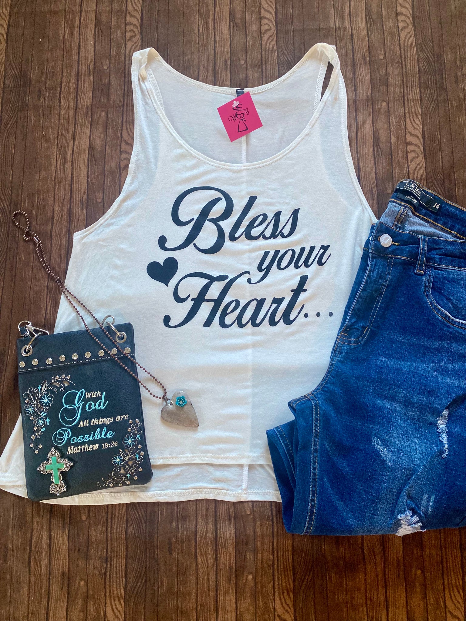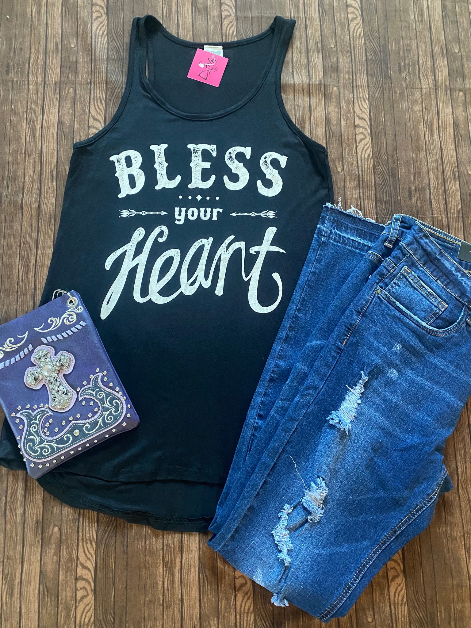 The TTL TANK -Bless You Heart provides a stylish and versatile option for all your clothing needs. With a comfortable and flattering fit, this tank is perfect for any occasion. Plus, it features high-quality materials that are designed to last, making it a great investment for your wardrobe.