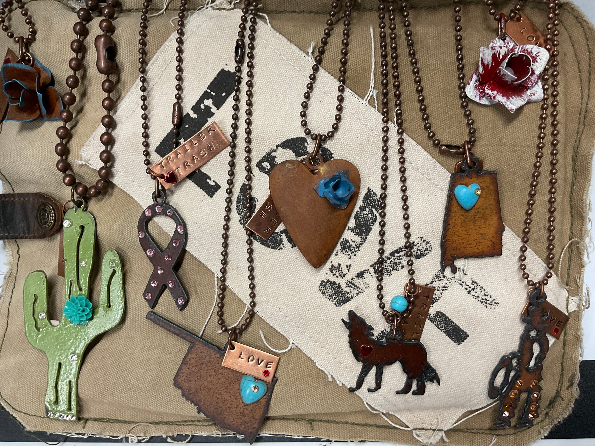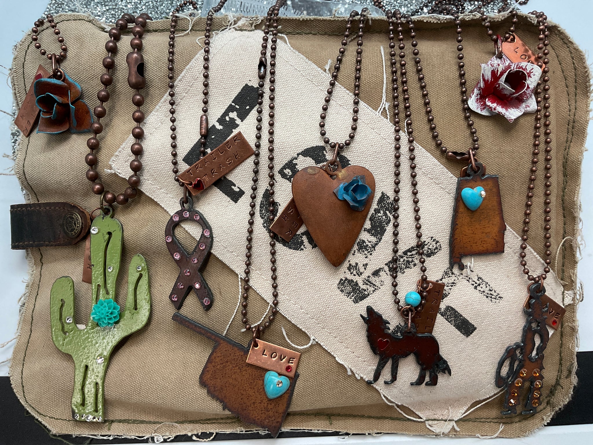 Beautifully Handmade Necklaces made out of Recycled Metal & Embellished in Swarovski Crystals & other beautifully colored Studs