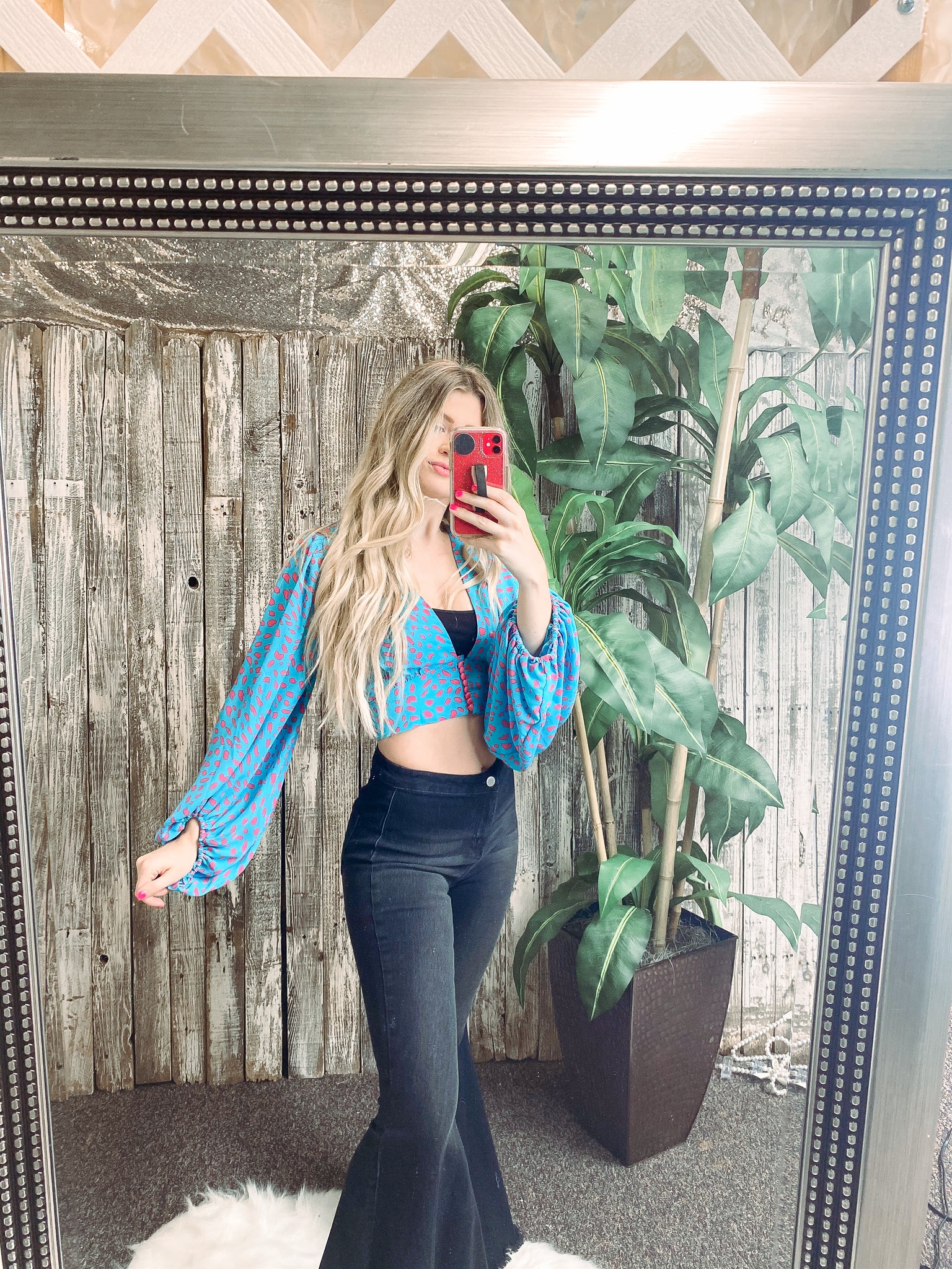 *Flare arms and button up detail with fitted band. Perfectly paired with any jeans or even better with flare bell bottoms!
