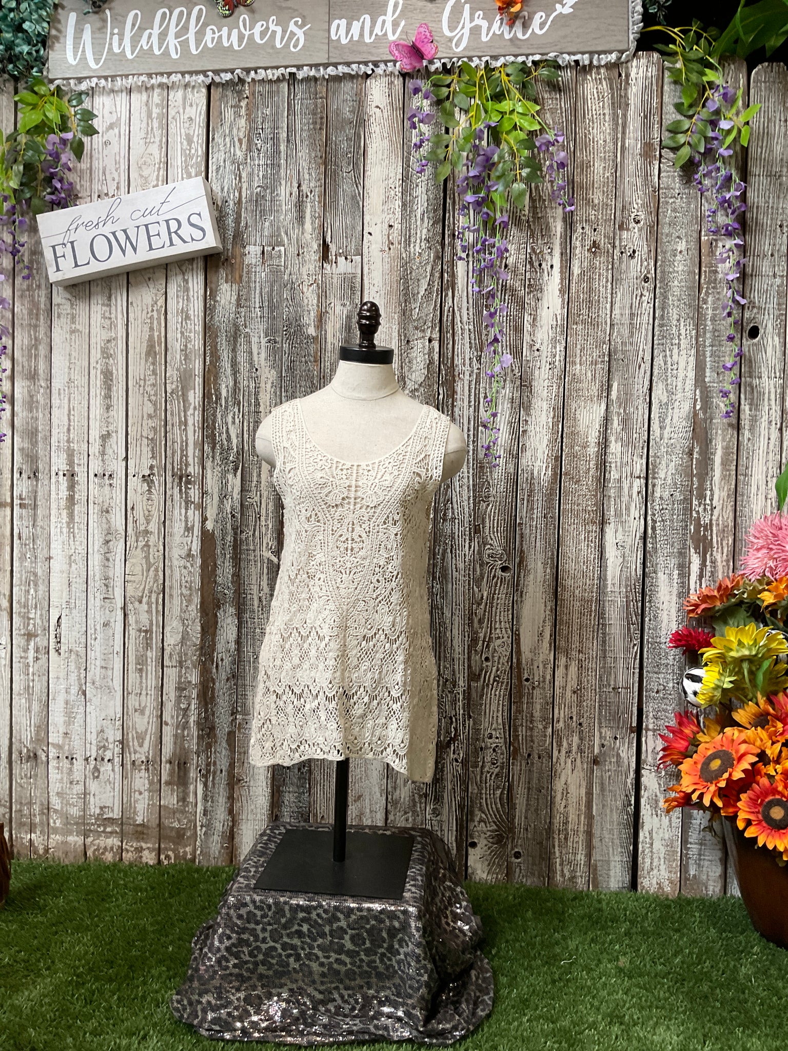 Crème colored, Sheer, Crochet Long Tank Top