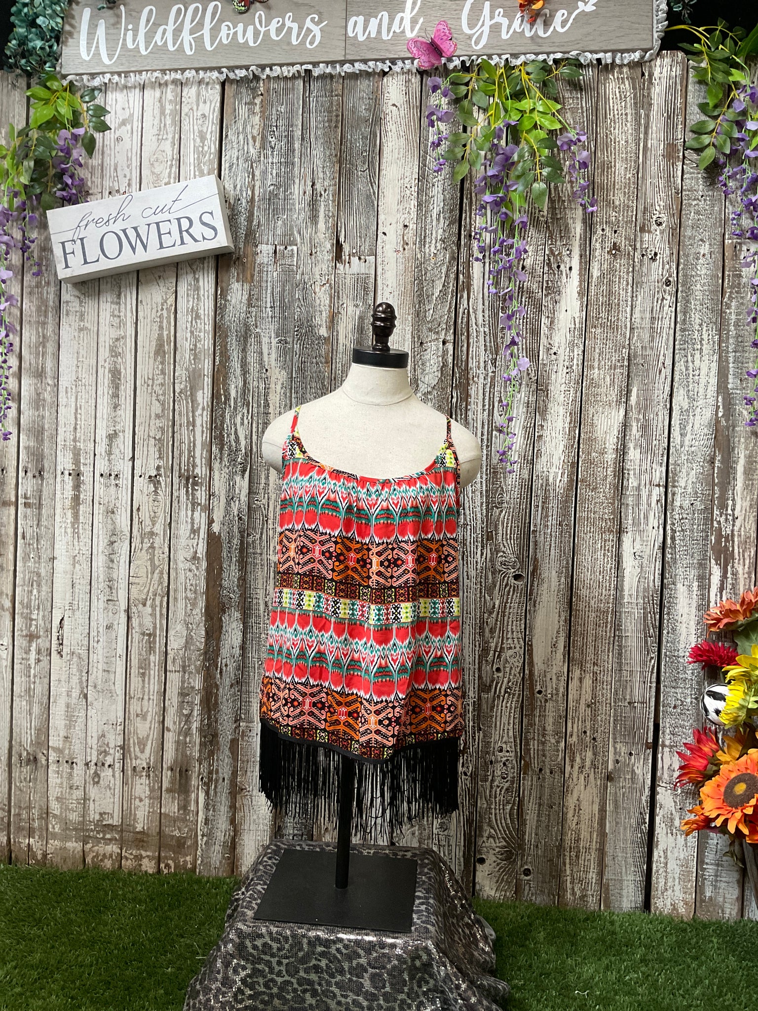 Light weight, Loose Fitting, Spaghetti Strapped, Tank Top w/ Tassles trimming bottom