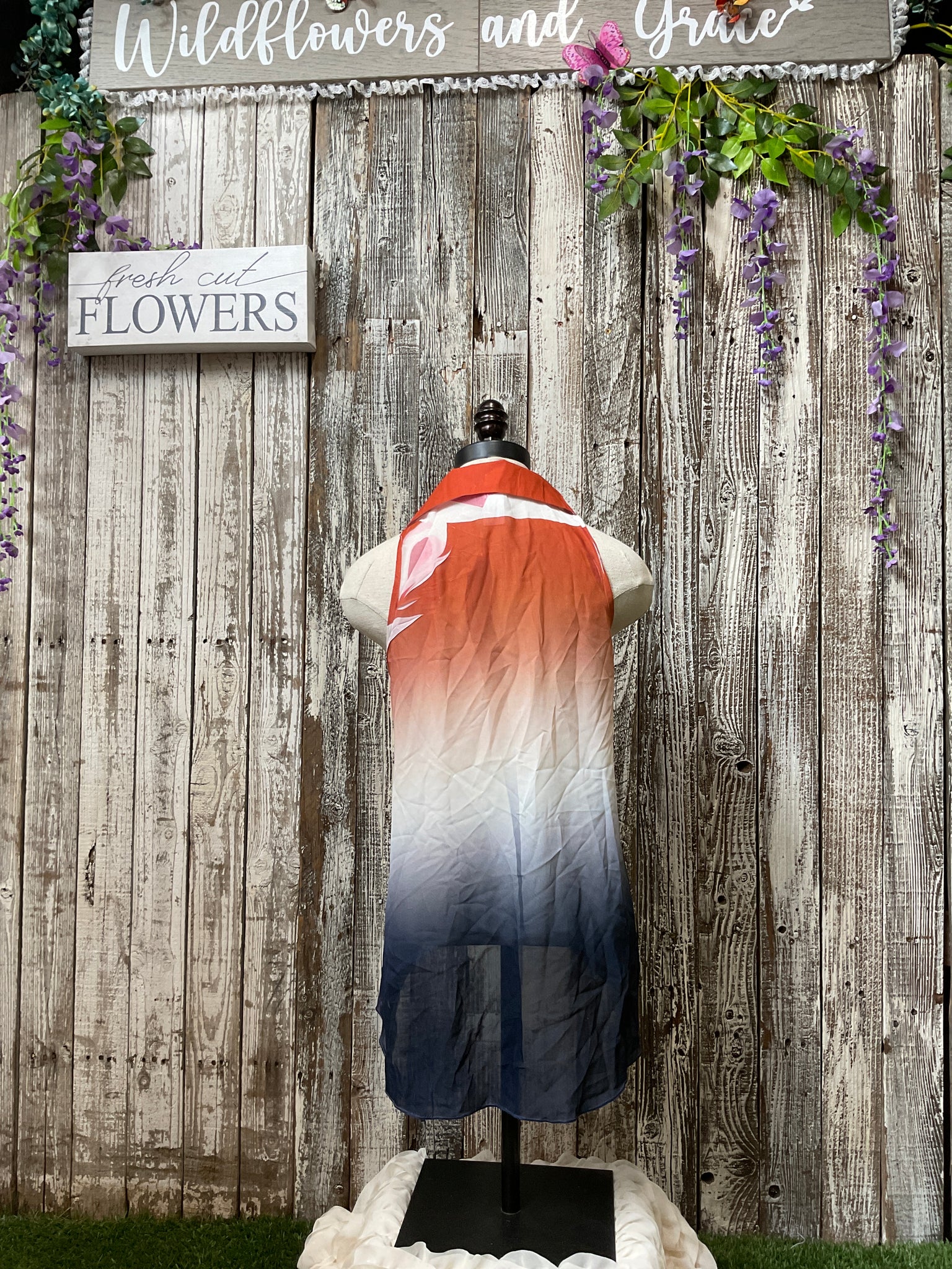 Sheer, Polyester, Collared, Button Up, Tank Top w/ Low Back. Perfect for that Summertime Backyard BBQ